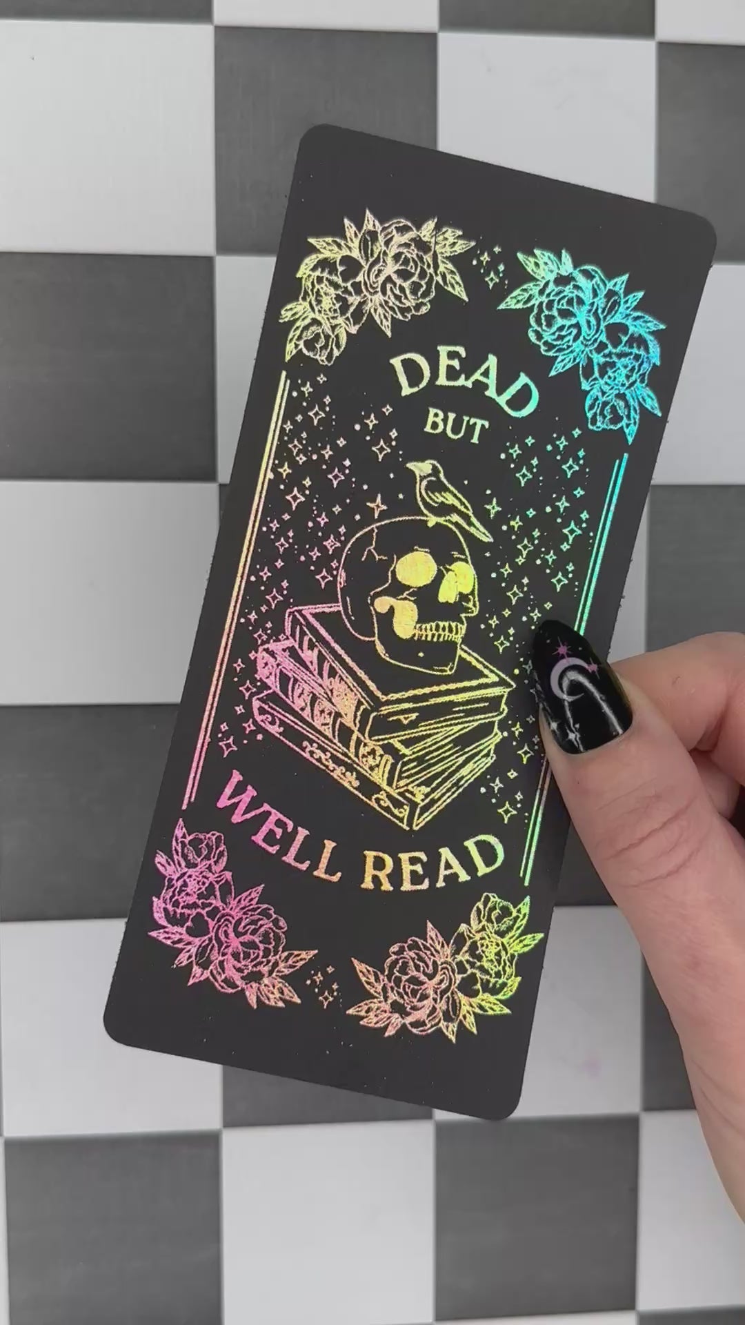 This holographic foil bookmark is the perfect gift for book lovers! Featuring a holographic gothic skull design on high quality 300gsm black card, this is one bookmark that really makes a statement!