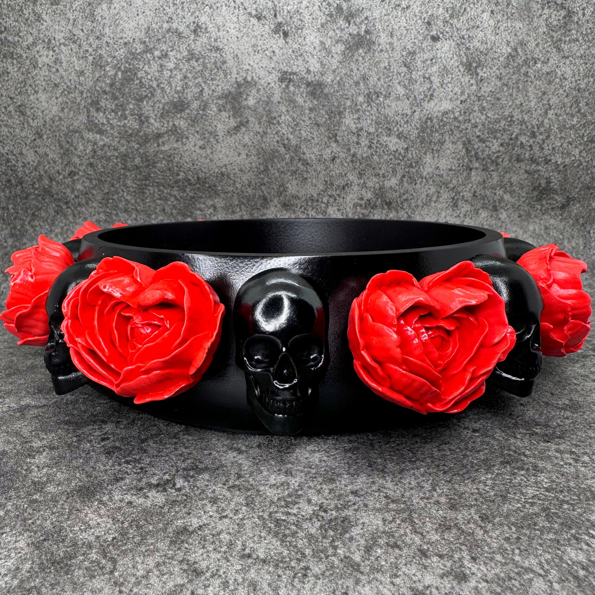 Indulge in the dark and mystical with our handmade Skull & Red Rose Ritual Bowl. Adorned with intricate skull and rose designs, this gothic bowl is perfect for all your spell-casting and ritual needs. Enjoy the luxurious and exclusive experience of channeling your artistic and literary spirit into your spiritual practices.