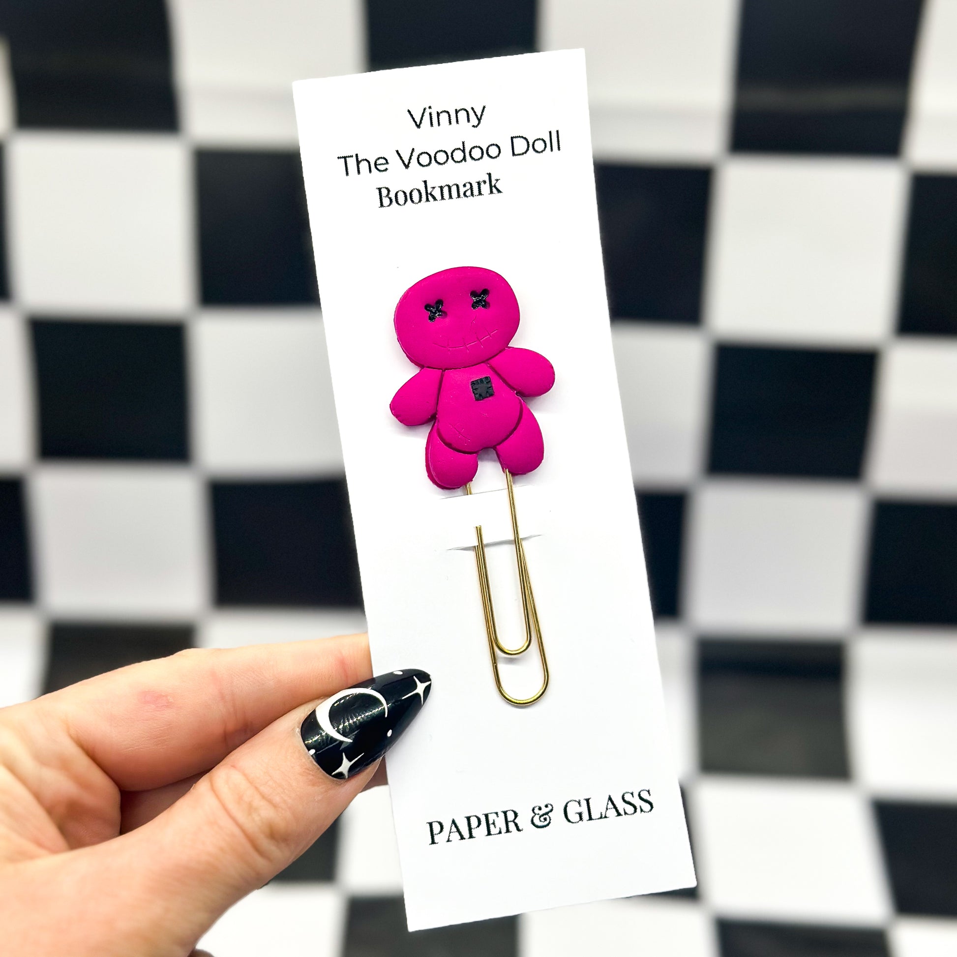 Add some creepy cute fun to your reading with this handmade Voodoo Doll Bookmark. Crafted with polymer clay, this quirky doll sits atop a large paper clip, making it the perfect accessory for your favorite book. (Don't worry, it won't bring any bad luck to your reading experience!)